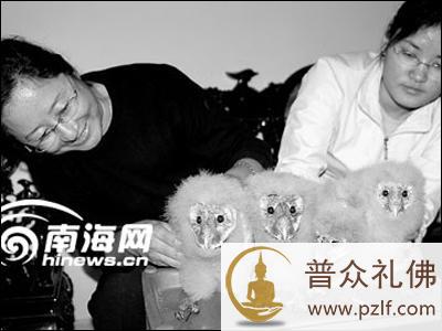 安女士(左)精心伺候四只草鸮的幼鸟。记者苏建强 人民网海南视窗1月5日消息: “有4只没见过的鸟,你要不?不要我们就自己吃了!”听到这句话,曾多次救助野生动物的安女士的心一下子悬到嗓子眼上,今天早晨,她不顾腰疼立即“打的”奔波数十公里从琼山农村买回了4只国家Ⅱ级保护鸟类草鸮的幼鸟。 家住海口市坡巷村的安海燕女士今天早晨接到一个朋友的电话说,琼山红旗镇一农民抓到4只连他74岁的父亲都没见过的鸟,刚刚孵出来就有一斤多重,问她愿不愿意买回来补补身体。安女士立即告诉对方,野鸟不能吃,没见过的更加不能吃。并马上花了250元钱“打的”赶到乡下。一进村,只见许多农民围着一只竹筐,里面装着5只毛绒绒的小鸟,看起来像猴面鹰。村民告诉她,这是农民进山抓蛇时抓到的。 安女士花50元钱从农民手中买回了其中4只小鸟,另一只农民不肯卖,说要留着自己吃,安女士劝说无效,只好带着4只小鸟返回海口。 回家后,安女士切了肉末喂小鸟,鸟不肯吃,她很着急。她打了七八个电话,辗转找到海口市林业局,一位工作人员告诉她:“你就留着自己养吧。”安女士说她不会养,对方竟然说,养活了就养活,养不活就算了,说完就挂了电话。 安女士说:“如果将小鸟救回来自己又养死了,那我更加难过。”于是又四处打电话,终于通过北京的一个动物保护机构联系上了海口的民间动物保护人士李波。 经李波对照资料确认,安女士救回的4只小鸟是属于国家Ⅱ级保护的猛禽鸟类草鸮的幼体,胎毛尚未褪去,估计孵出来还不到一个月。李波说,他曾多次养过这类鸟,积累了相关经验,这4只小鸟养上一两个月就能放飞。 据了解,安女士是内蒙古人,在海口定居已17年了。此前她也曾多次花钱从菜市场等处买回野鸟、穿山甲等野生动物