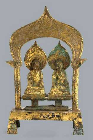 往昔行菩萨道时,立誓在成佛灭度之后,凡十方世界有宣说《法华经》之处,必自地涌现于前,以证明此经的真义。故释尊说《法华经》时,有七宝塔从地中涌出,耸立于空中,塔内即有多宝如来坐师子座,其全身姿态如入禅定状,并分半座与释尊。